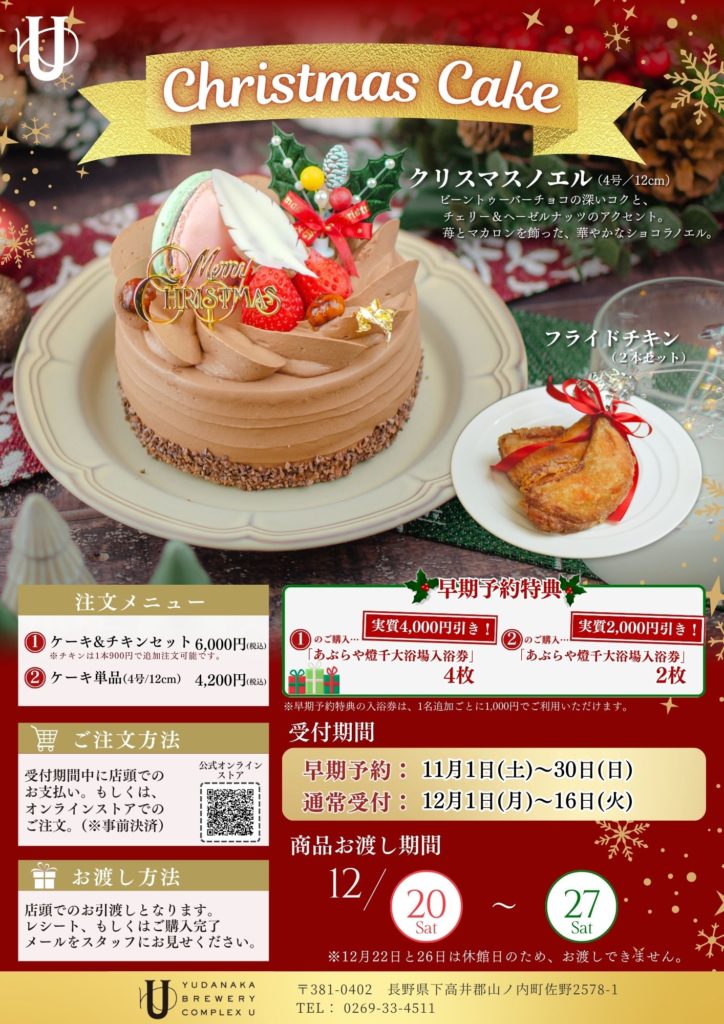 今年もYUDANAKA BREWERY COMPLEX Uより、パティシエ特製のクリスマスケーキが登場します。